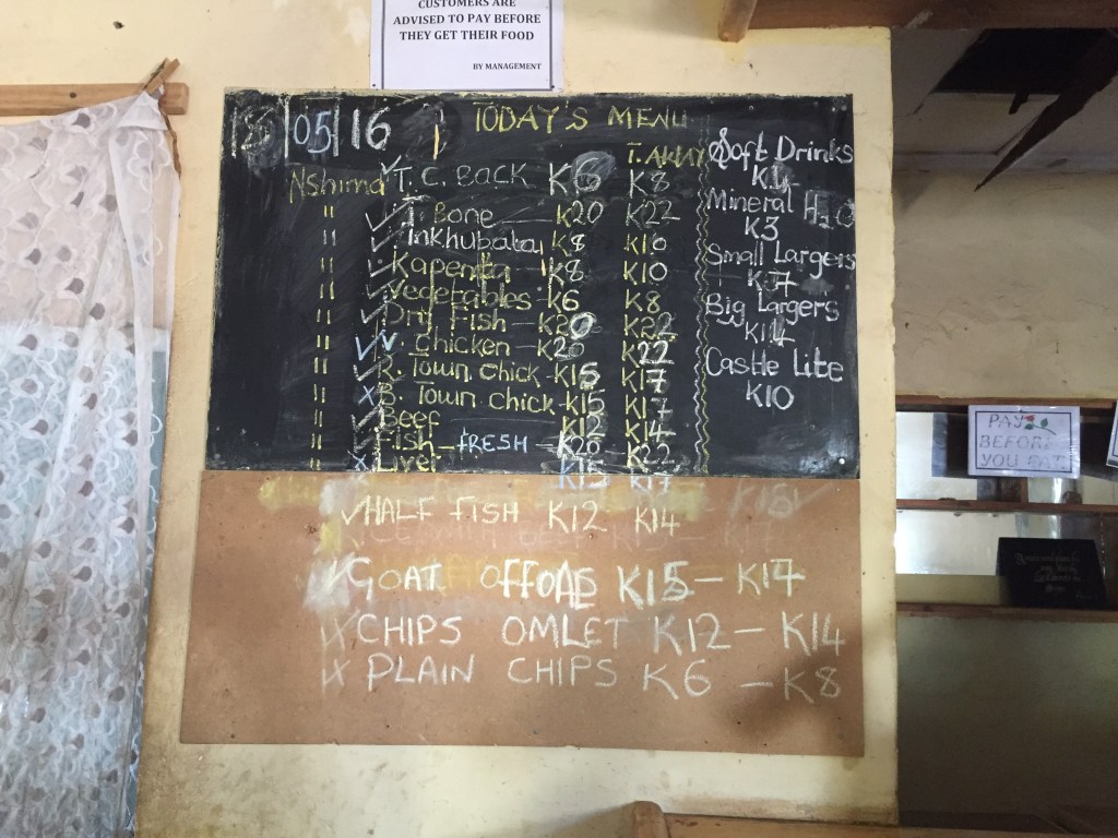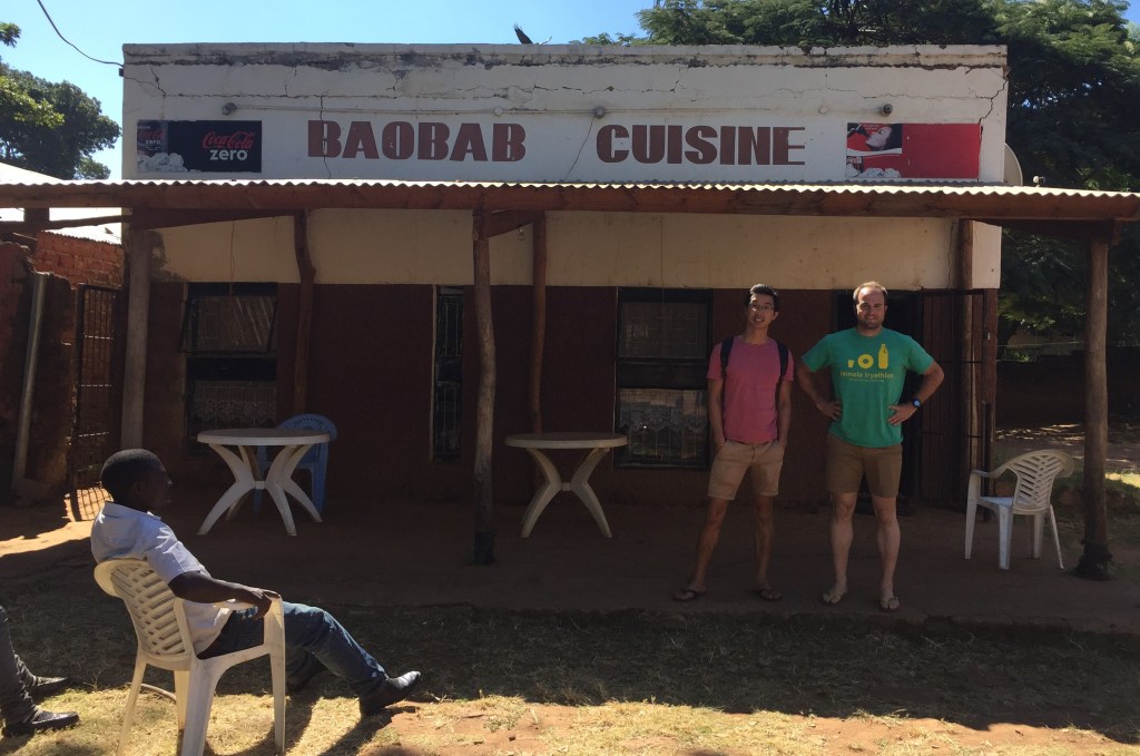 After some great game viewing in South Luangwa the time came to leave Zambia. We found a great lunch spot on the way out, recommended to us by a Petrol attendant. Baobab Cuisine treated us to a distinctly local lunch of chicken, beans and pap with a side of rape. A member of the cabbage family, rapeseed is a vegetable the Zambian’s do particularly well. Commonly abbreviated to “rape” on practically every restaurant menu, the veggie has a habit of provoking terribly inappropriate jokes. Our food was not accompanied by any napkins, only a little bucket of water in the corner of the room for hand-washing, and when I queried about cutlery I got nothing but a confused stare in response.