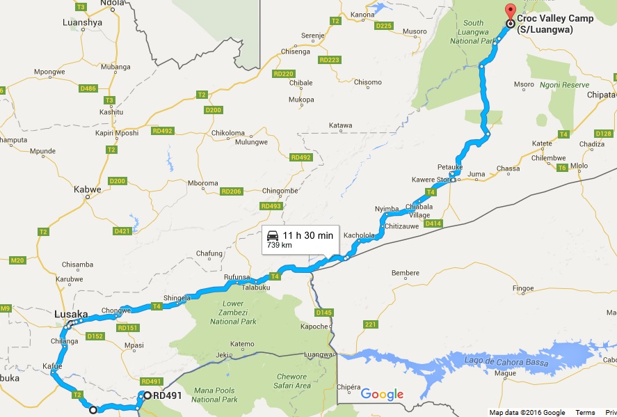 The plan was a 12 hour, 750 km drive from Kiambi Lodge on the lower Zambezi to Crocodile Valley in the South Luangwa National Park. The first 2/3 of the drive on mostly smooth tarmac roads went as planned and it was a pleasure to see the hills and valleys of the beautiful Zambian countryside. Our navigating app had done wonders on the unmarked roads of Chobe and the route to South Luangwa was clearly outlined with towns and villages to pass along the way.