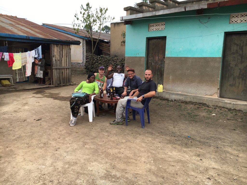 After getting our camping organized at Lake Bunyoni Overland Resort, a beautiful and lusciously green campground with great facilities, we started networking with the locals to organize a gorilla tour. A sneaky tour was organized with payment contingent upon seeing actual mountain gorillas. The next day we met our driver and two other tourists, a gentleman named Eve from Switzerland and his friend Aaliyah from Kampala. The nature of their friendship/relationship was unclear. We set off for the Bwindi Impenetrable Forest National Park about 25km down the road. It was unclear why we left at 9:30 AM because most other drivers we had seen thus far in our journey followed the “hurry up and wait” method of pedal to the metal acceleration followed by screeching brakes. It was an unusual surprise to have a driver so committed to leaving early in the morning but extending the driving time by maintaining steady pace of 5kph on the road. It turns out, our time slot for the gorillas wasn’t until the afternoon and the driver had nowhere to take us so was determined to just kill time by driving slowly. We put a stop to this by demanding to be driven to a bar. As there were no bars alongside the road, we found a shop selling beer, organized some tables and chairs and started our own bar.