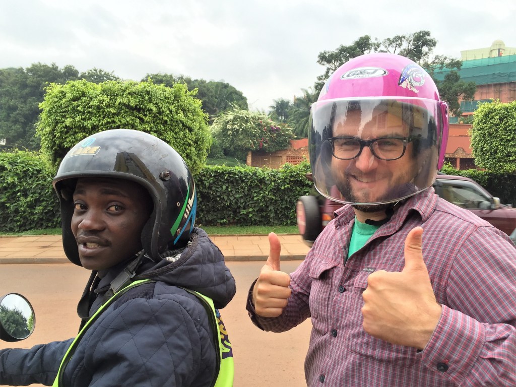 Considering the constant traffic, the most efficient way to get around Kampala is undoubtedly by motorcycle. It is also by far the most dangerous so Shea and I were relieved to discover that the Boda Boda tour company we had selected provided helmets. Shea’s was an ultra-manly pink colour, slightly concerning in a country where it is illegal to be gay. I probably should have mentioned to the tour operator that we were both male when booking a day trip for two.