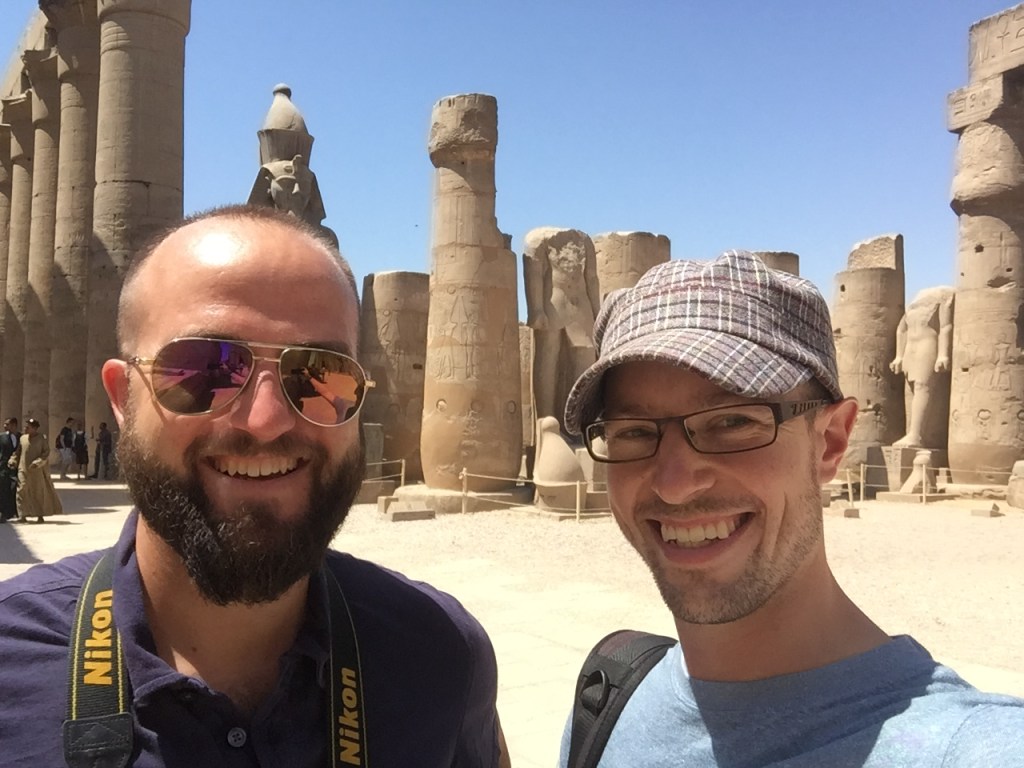 In Luxor, we stayed at the top rated Nefertiti Hotel, which in addition to being in our budget had a great restaurant downstairs and a rooftop lounge for breakfast, lunch, dinner, evening shisha or games of Scrabble. The nighttime view from the rooftop while crushing Ross at Scrabble again was particularly beautiful. The tourist sites in Luxor were also fun. The Luxor Temple was practically across the street so it was an easy morning of exploring. Luxor Temple was also remarkable for how few foreign tourists we encountered. In fact, the Egyptians visiting started asking to take pictures with us. Either dirty sweaty pan-African journeying backpackers are the new celebrity or foreign tourists really were a rare commodity.