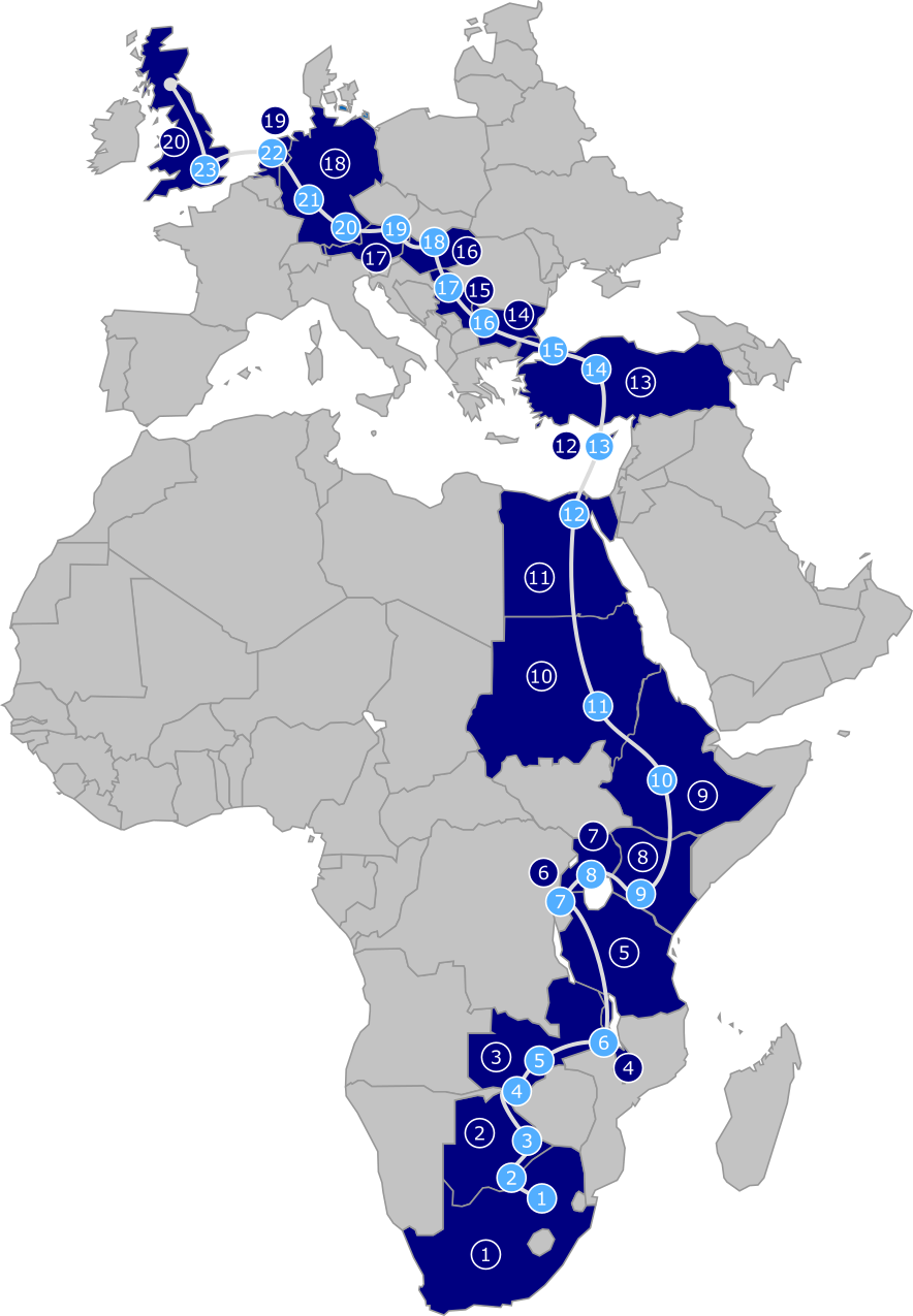 The route will run up through central Africa, across into Turkey via ferry and then overland till the Netherlands where I will catch a second ferry into the United Kingdom. I’ve included a list of all of the major airports that we will pass en route in the map below. If you’re contemplating joining for a section along the way please drop me a mail on ross.kinmont@gmail.com. The dates listed are approximate dates for each of the locations. If we need to move them forward or back a bit to accommodate flights we can do so.